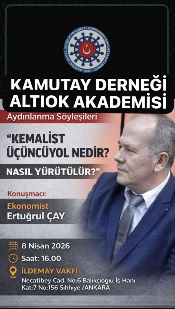 KAMUTAY DERNEĞİ nin Altıok Akademisi çerçevesinde sürdürdüğü “Aydınlanma Söyleşileri” kapsamındaki 8 Nisan 2026 söyleşisinin konusu; “Kemalist Üçüncüyol” nedir? nasıl yürütülür?” konuğu ise Ekonomist Ertuğrul Çay.