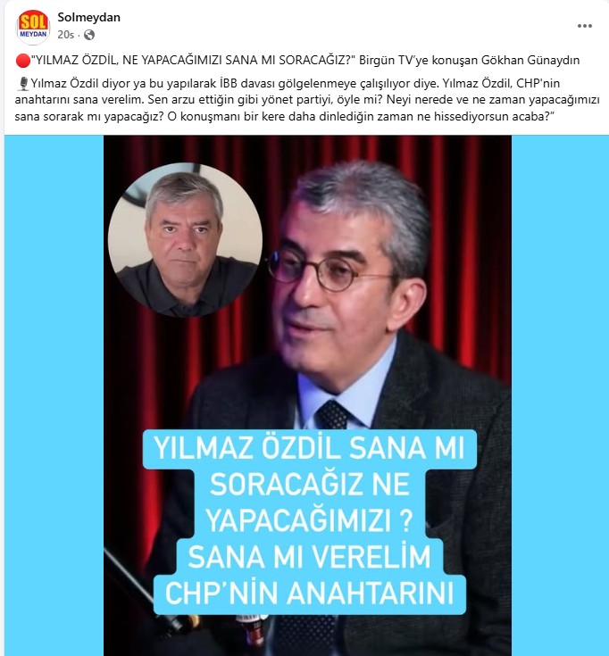 “Solmeydan”dan 20 saat önce yayınlanmış olan yukarıdaki sözleri CHP Grup Başkan Vekili Gökhan Günaydın Birgün TV’de söylemiş olamaz!